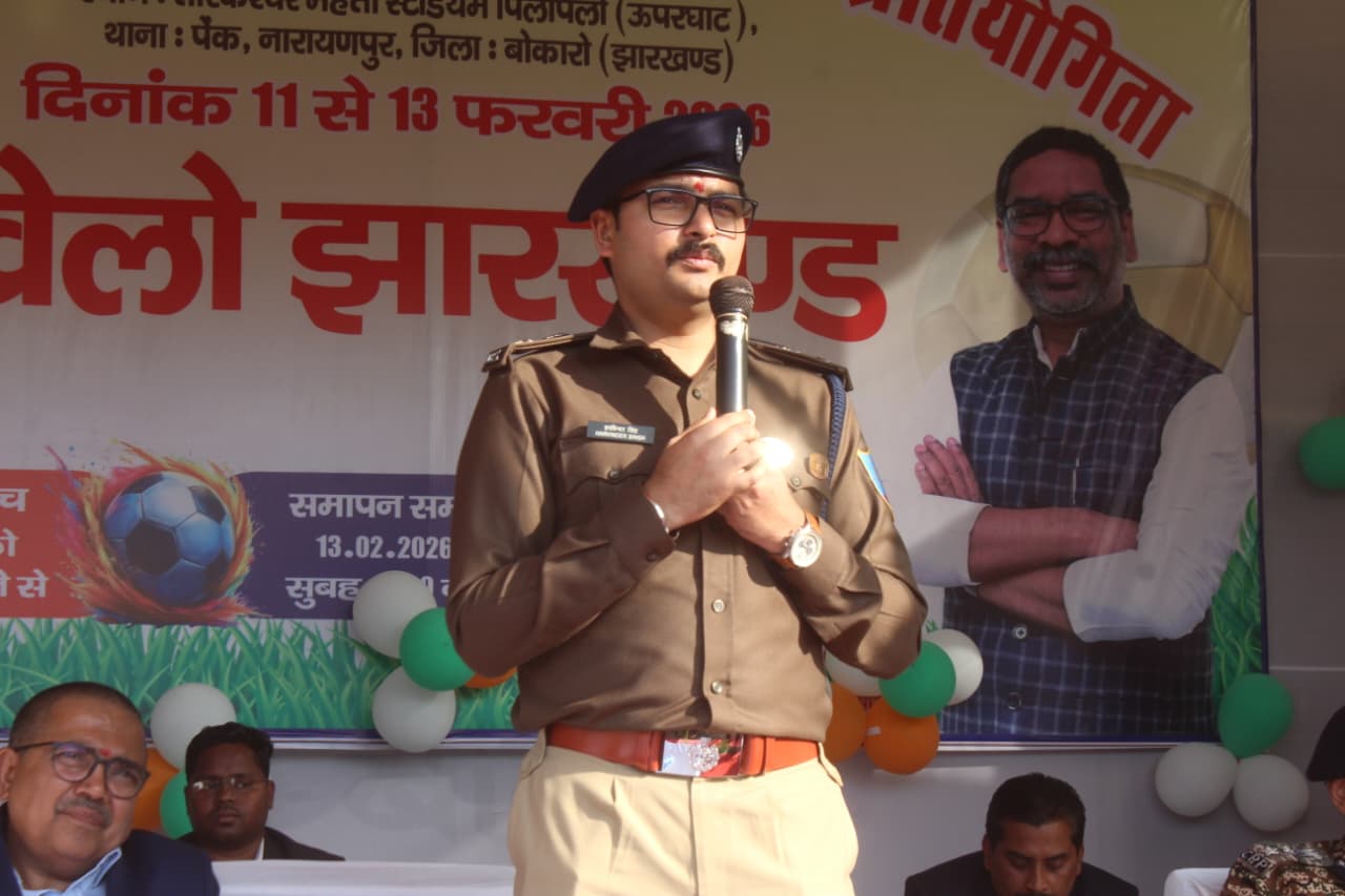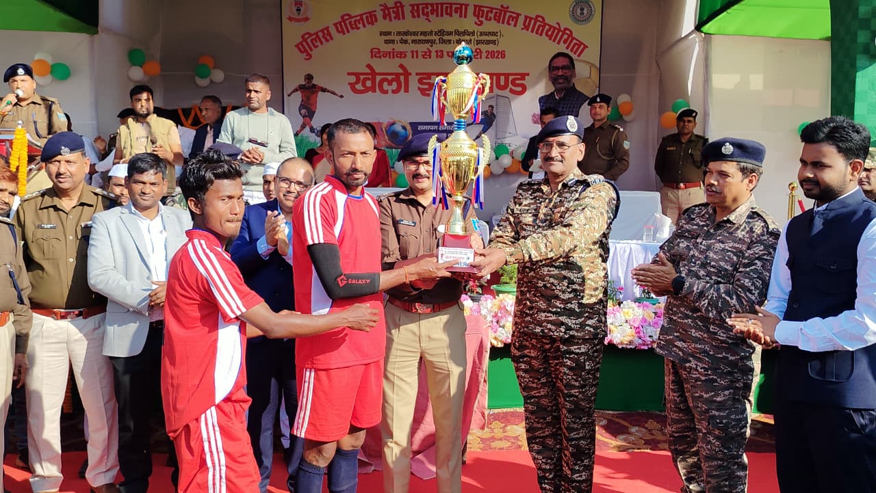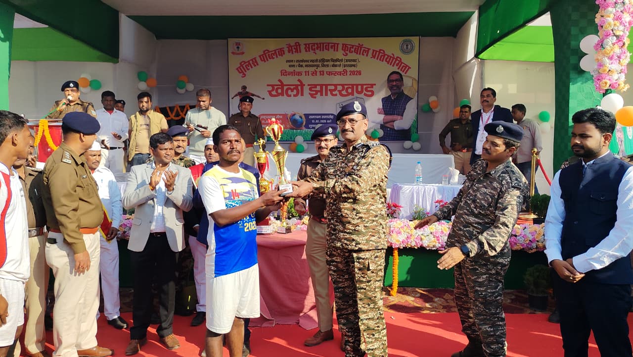 बोकारो : नावाडीह प्रखण्ड के तारकेश्वर महतो स्टेडियम पिलपिलो (ऊपरघाट) पेंक नारायणपुर में आयोजित तीन दिवसीय पुलिस – पब्लिक मैत्री सद्भावना फुटबॉल प्रतियोगिता का समापन शुक्रवार को उत्साह एवं उमंग के साथ सम्पन्न हुआ। फाइनल मुकाबला शाहाबेरिया एवं सारूबेड़ा टीम के बीच खेला गया, जिसमें सारूबेड़ा टीम विजेता रही। समापन अवसर पर आतिशबाजी के बीच विजेता एवं उपविजेता टीमों को पुरस्कार प्रदान किया गया। खिलाड़ियों ने पूरे टूर्नामेंट में अनुशासन, टीम भावना एवं उत्कृष्ट खेल कौशल का प्रदर्शन किया।